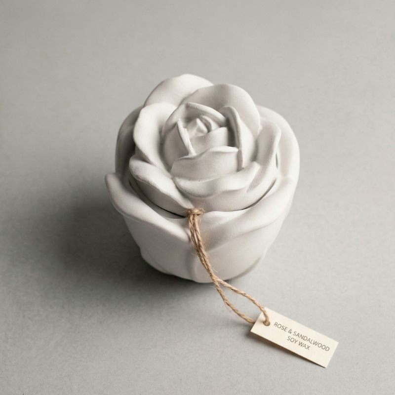 Αυτό το χειροποίητο κερί σόγιας σε σχήμα τριαντάφυλλου δίνει μια κομψή πινελιά σε κάθε χώρο.